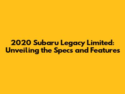 Hey everyone! Today, we're diving deep into the 2020 Subaru Legacy Limited, a car that was quite the talk of the town back in its day. This article is all about giving you the lowdown on the specs, features, and everything else you need to know about this popular model. We'll be looking at what made the Legacy Limited a standout choice, what it offered, and how it stacked up against the competition. So, if you're curious about this car or just love getting into the details of a good vehicle, you're in the right place, guys!