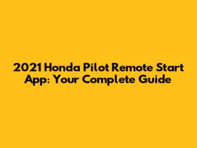 2021 Honda Pilot Remote Start App: Your Guide