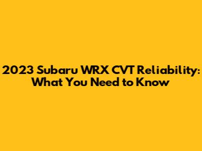 2023 Subaru WRX CVT Reliability: What You Need To Know