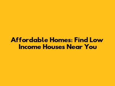 Affordable Homes: Find Low Income Houses Near You