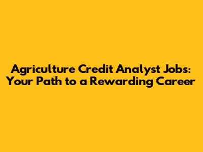 Agriculture Credit Analyst Jobs: Your Path To A Rewarding Career