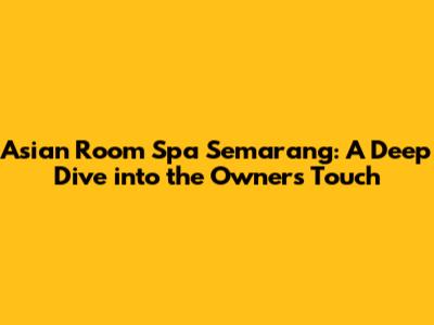 Hey guys! Ever wondered what makes a spa truly stand out? It often boils down to the personal touch of the owner. Today, we're diving deep into the Asian Room Spa Semarang, exploring how its owner's vision shapes the entire experience. We'll uncover what makes this spa a unique destination for relaxation and rejuvenation in Semarang.