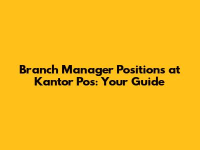 Branch Manager Positions At Kantor Pos: Your Guide