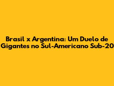 Brasil x Argentina: Um Duelo de Gigantes no Sul-Americano Sub-20