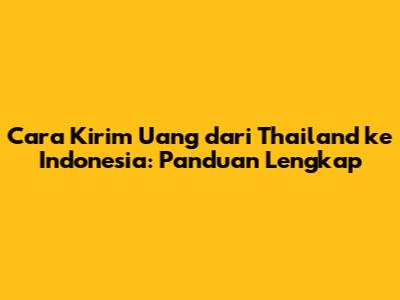 Cara Kirim Uang Dari Thailand Ke Indonesia: Panduan Lengkap