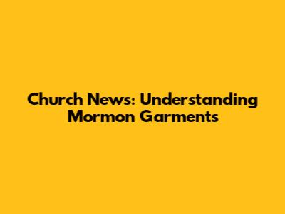 Church News: Understanding Mormon Garments