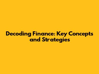 Decoding Finance: Key Concepts And Strategies