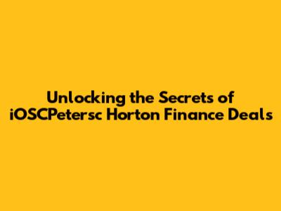 Unlocking the Secrets of iOSCPetersc Horton Finance Deals