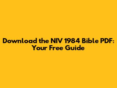 Download The NIV 1984 Bible PDF: Your Free Guide
