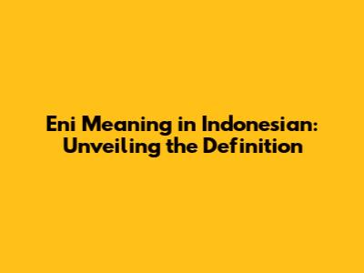 Eni Meaning In Indonesian: Unveiling The Definition