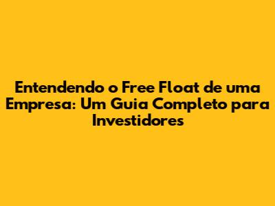 Fala, pessoal! Hoje vamos mergulhar em um conceito super importante no mundo dos investimentos: o free float de uma empresa. Se você está começando a investir ou já tem alguma experiência, entender o que é o free float e como ele funciona pode te dar uma vantagem significativa na hora de tomar decisões. Então, prepare-se, porque vamos desmistificar tudo sobre esse termo e mostrar como ele pode influenciar suas escolhas.