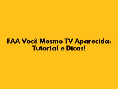 FAA Você Mesmo TV Aparecida: Tutorial E Dicas!
