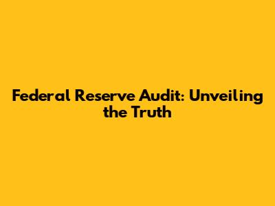 Federal Reserve Audit: Unveiling The Truth