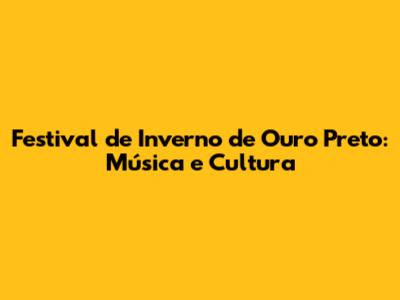 Festival De Inverno De Ouro Preto: Música E Cultura