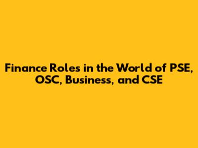Finance Roles In The World Of PSE, OSC, Business, And CSE