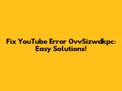 Fix YouTube Error 0vv5izwdkpc: Easy Solutions!