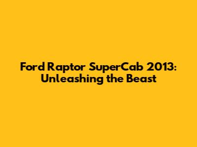 Ford Raptor SuperCab 2013: A Deep Dive into the Specs