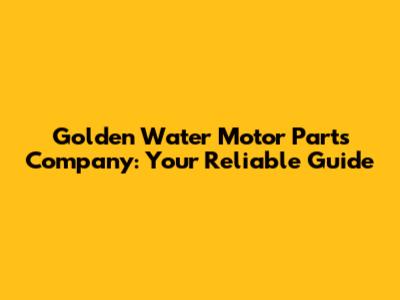 Golden Water Motor Parts Company: Your Reliable Guide