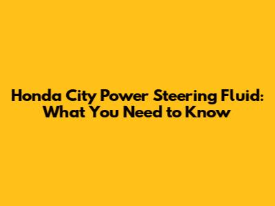 Honda City Power Steering Fluid: What You Need To Know