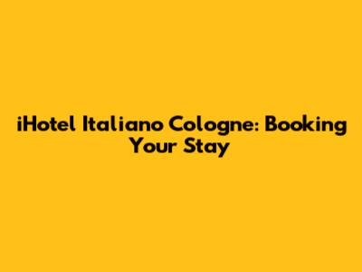 Are you planning a trip to Cologne and considering iHotel Italiano for your accommodation? Let's dive into everything you need to know about booking your stay at this charming hotel. From its unique Italian-inspired design to its convenient location and top-notch amenities, iHotel Italiano promises a memorable experience. Securing your reservation is the first step, and this guide will walk you through the process, ensuring a smooth and hassle-free booking experience.