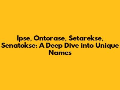 Hey guys! Ever stumbled upon a name and thought, "Wow, that's different!"? Well, buckle up because we're diving deep into the fascinating world of unique names: Ipse, Ontorase, Setarekse, and Senatokse. These aren't your everyday names, and that's precisely what makes them so intriguing. In this article, we will explore the possible meanings, origins, and maybe even some fun facts about these distinctive terms. Whether you're a name enthusiast, a writer searching for character inspiration, or simply curious, you're in for a treat. So, let's embark on this linguistic adventure together and uncover the mysteries behind Ipse, Ontorase, Setarekse, and Senatokse!