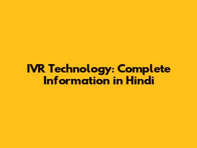 IVR Technology: Complete Information In Hindi