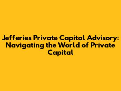 Jefferies Private Capital Advisory: What You Need To Know