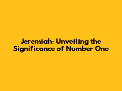 Jeremiah: Discovering The Significance Of 'Number One'