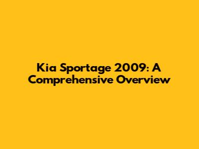 Kia Sportage 2009: Specs, Features, And Everything You Need