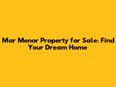 Mar Menor Property For Sale: Find Your Dream Home
