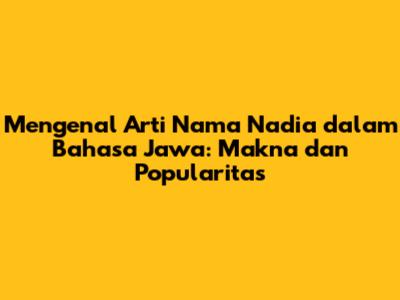 Interpretasi Nama Nadia dalam Konteks Budaya Jawa