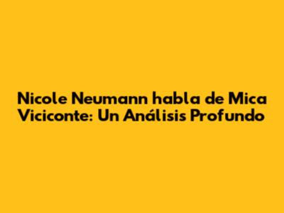En conclusión, las declaraciones de Nicole Neumann sobre Mica Viciconte nos revelan una compleja historia de relaciones, emociones y expectativas. Sus palabras, a menudo medidas, reflejan la dificultad de navegar por la vida pública y familiar en medio de la controversia. Analizar estas declaraciones nos permite entender mejor las dinámicas que las unen y el impacto de sus acciones en el ojo público.
