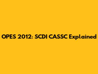 OPES 2012: SCDI CASSC Explained