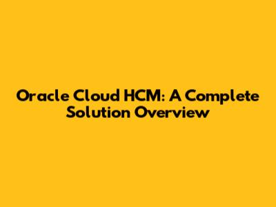 Oracle Cloud HCM: A Complete Solution Overview
