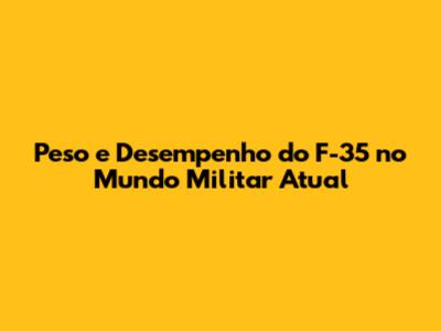 Peso E Desempenho Do F-35 No Mundo Militar Atual