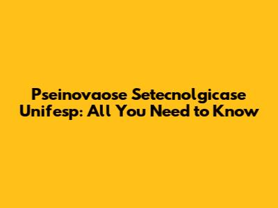 Pseinovaose Setecnolgicase Unifesp: All You Need To Know