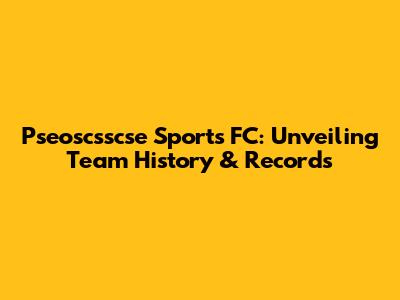Pseoscsscse Sports FC: Unveiling Team History & Records