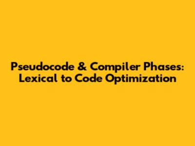 Pseudocode & Compiler Phases: Lexical To Code Optimization