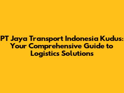 Unveiling PT Jaya Transport Indonesia Kudus: A Brief Overview