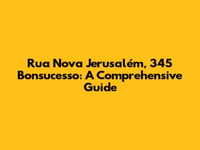 Hey guys! Ever found yourself needing to know more about a specific address? Well, today we're diving deep into Rua Nova Jerusalém, 345, located in the vibrant neighborhood of Bonsucesso. Whether you're planning a visit, expecting a package, or just curious about the area, this guide will provide you with all the essential information you need. We'll explore everything from its location and nearby landmarks to local amenities and the overall vibe of the neighborhood. So, buckle up and let's get started!