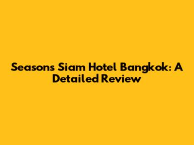 Seasons Siam Hotel Bangkok: A Detailed Review