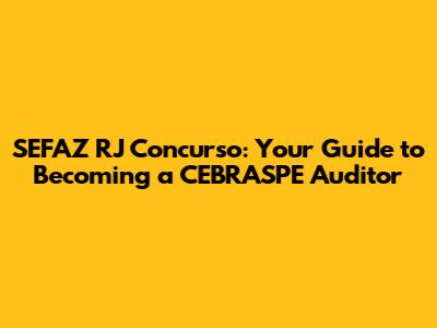 Hey everyone! Are you dreaming of a career as an auditor for the Secretaria de Estado de Fazenda do Rio de Janeiro (SEFAZ RJ)? Well, you're in the right place! This guide is your ultimate companion to navigate the SEFAZ RJ concurso process, especially if you're aiming for the auditor role. We'll delve into everything from the exam structure to the best strategies for success, all tailored for the CEBRASPE (formerly CESPE) style. So, grab a coffee, settle in, and let's get you ready to ace that exam! We will be discussing the crucial aspects of the SEFAZ RJ concurso, providing you with insights and tips to maximize your chances of success. Understanding the exam's nuances, the CEBRASPE methodology, and crafting an effective study plan are vital steps in your journey. Whether you are a seasoned exam-taker or just starting, this guide is designed to offer clarity and direction. Preparing for a concurso like the SEFAZ RJ demands dedication, focus, and a strategic approach. We'll explore the best resources, study techniques, and how to manage the pressure that comes with such a significant undertaking. The journey to becoming a SEFAZ RJ auditor is challenging, but with the right preparation and mindset, you can achieve your goal. Let's make this process as smooth and effective as possible. Good luck, and let's get started!