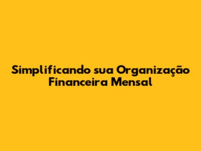 Simplificando Sua Organização Financeira Mensal
