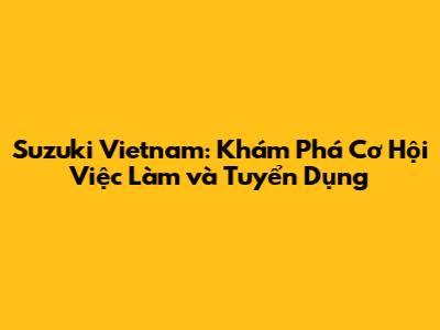 Suzuki Vietnam: Cơ Hội Việc Làm & Tuyển Dụng Mới Nhất