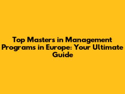 Top Masters In Management Programs In Europe