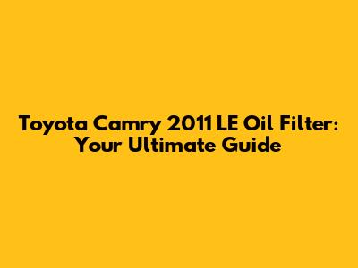 Toyota Camry 2011 LE: Oil Filter Guide