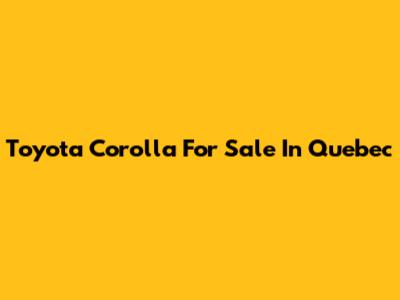 Toyota Corolla For Sale In Quebec