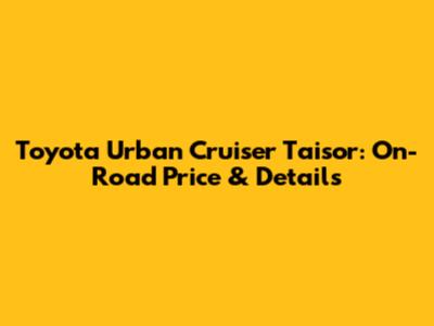 Toyota Urban Cruiser Taisor: On-Road Price & Details