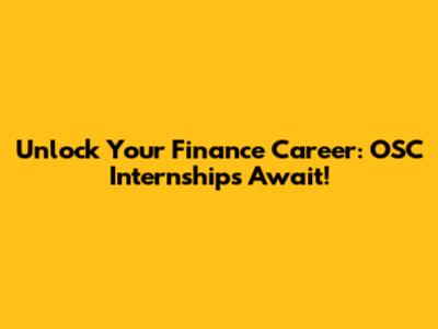 Unlock Your Finance Career: OSC Internships Await!