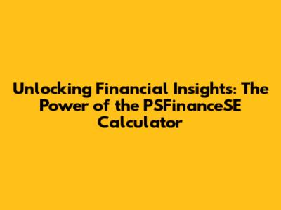 Unlocking Financial Insights: The Power Of The PSFinanceSE Calculator